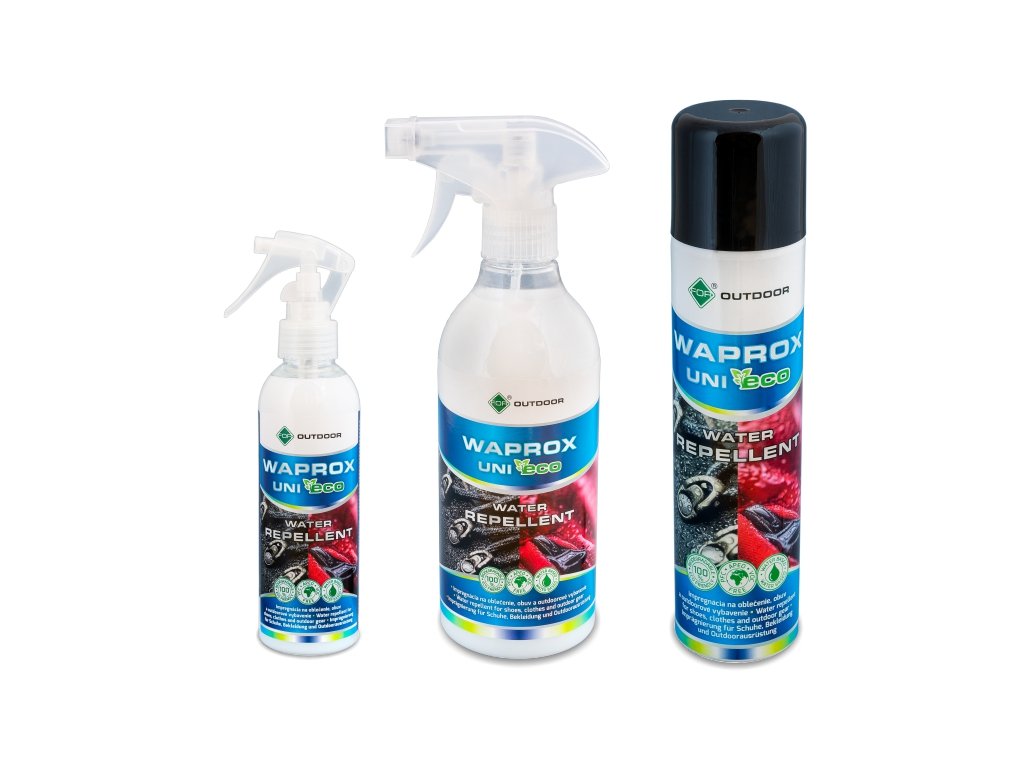 FOR WAPROX UNI eco je voděodpudivá impregnace s UV ochranou. Impregnace je určená na obuv, oblečení a outdoorové vybavení ze všech druhů textilií a kůží, z membránových a softshellových materiálů. Přípravek byl vyvinut s maximálním ohledem na životní prostředí Charakteristika: impregnace na oblečení, obuv a outdoorové vybavení vhodná pro všechny druhy textilií a kůží, membránové a softshellové materiály UV ochrana přípravek na bázi vody s obsahem modifikovaných reaktivních silikonových polymerů vytváří voděodpudivou vrstvu zachovává prodyšnost a paropropustnost zvyšuje elasticitu vláken, čímž prodlužuje jejich životnost nemění barvu ošetřovaného materiálu bez zápachu, vhodná pro aplikaci v interiéru 100% biodegradovatelný snadná aplikace Množství / balení: 500 ml / rozprašovač